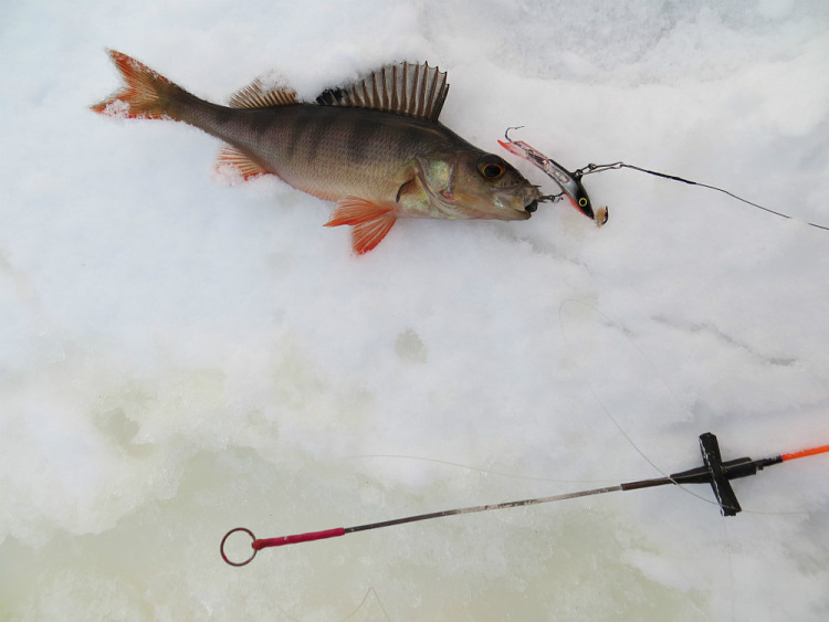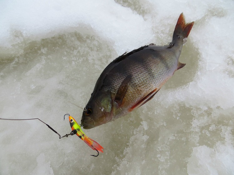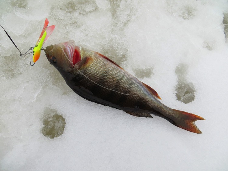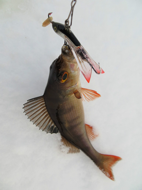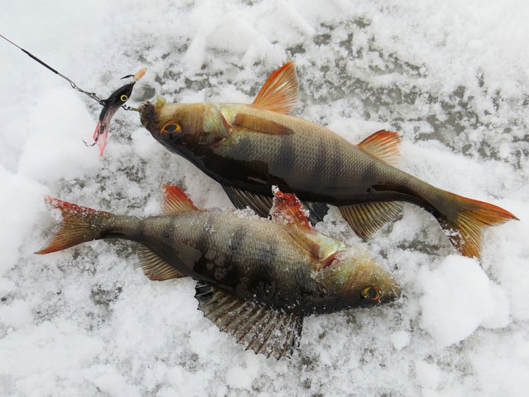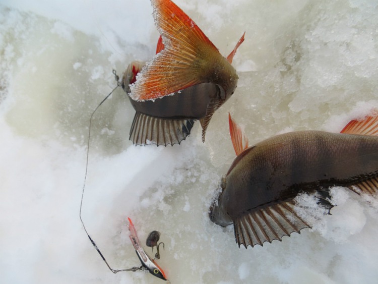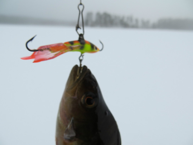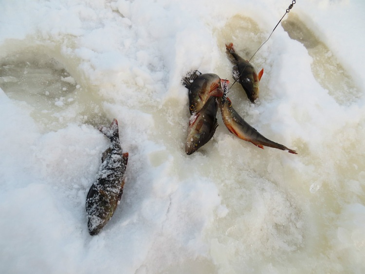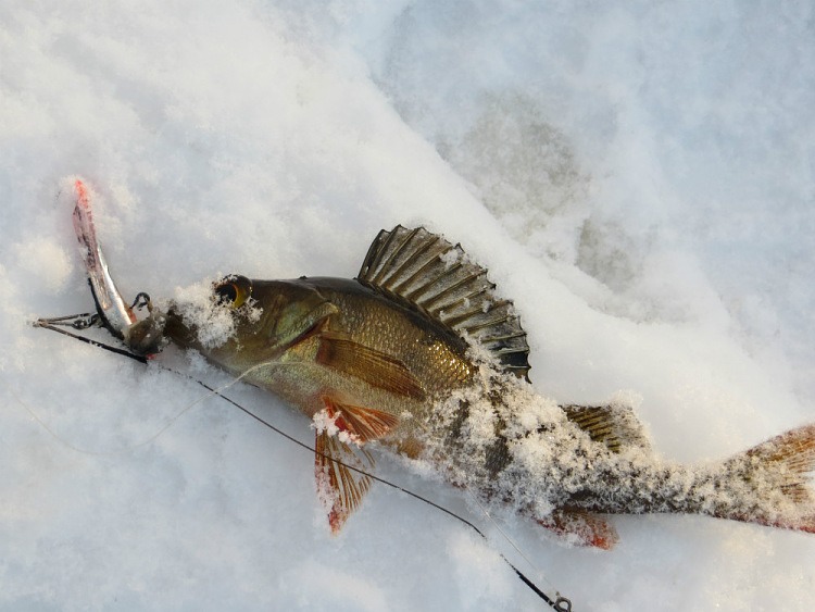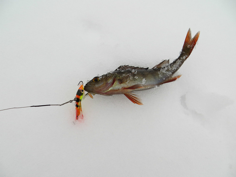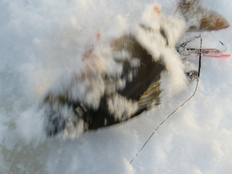 Окуни бьются в свежем снежке