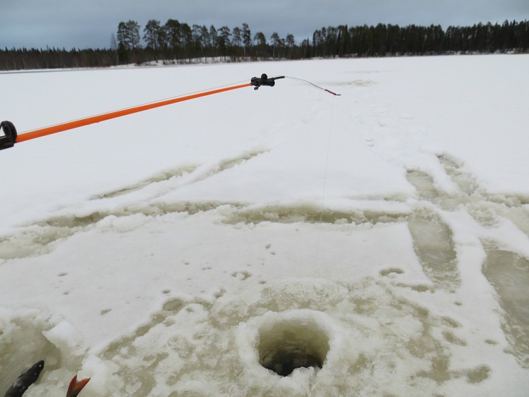На одной из лунок примерно с полметра над дном хлесткий удар по кивочку. Опаньки, что-то порезвее провернулось.