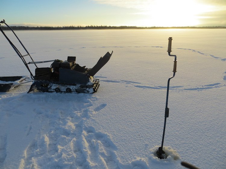 Мне ж остается перемещаться дальше по ряду лунок. Третья, четвертая в ряду. Пустые. На пятой глубина до этого изменявшаяся на четверть, стабилизировалась. Перешла к пологому дну. Понятно, примерно здесь и стоит ожидать стоянку окуша.