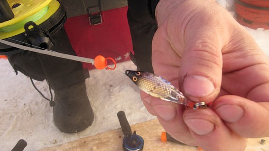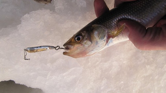 Знать у нас одинаковые наблюдения получились: С утра на крупные блёсны, форма под креветку. После обеда на мелкие с серебряным покрытием. При том замечаю, что у Саши бойчее поклёвывает. Мои серебряные в основном в горизонтальном расположении находятся, по типу мормышки. Отверстие, как и в мормышке посерёдке тела. У Саши вертикальные. Их корюшка более активно атакует. Да, каждый сезон, свои находки и открытия приносит.
