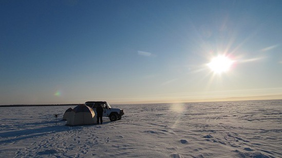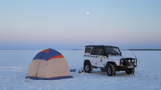… Разбежались по лункам. Каждый палатку поставил, Саня аж с газогрелкой керамической. Со стороны палатка будто самовар кипит, пар изо всех щелей поднимается.