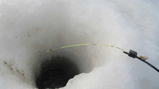 Смещаемся метров двести к мелям. Закладываем путик из ряда лунок. С десяток вполне хватит, чтобы найти перспективное место.