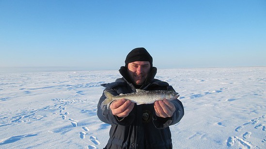 Всегда мечтаешь поймать что-то трофейное крупное, чтобы была борьба, чтобы был у рыбы шанс и победить, и в поединке на равных. Давно не встречались в Дельте Двины хорошие особи морской рыбы. Уж, и не припомню когда, звенела леса, и уду пригибало ко льду. И наверно, забытый азарт борьбы подзатих и сменился просто милой спокойной рыбалой для души. Когда на первый план выходит сама поездка, величайшие просторы, хрустальный воздух, смех друзей и бездонно голубое небо. И мороз. Ох! Мороз, такая тишина вокруг, что кажется, пройди путник за три девять земель и то будет слышен скрип снега из подшитых деревенских валенок. Бывало такое, путника не видать в тумане, и шаги уже слышны. Потом появляется над землей, как бы плывет в мареве. Прям «Летучий голландец». Да пора возвращаться к рыбалке. Из-за неё, впрочем, и рассуждения сии начал, заведшие меня далеко от поездки.