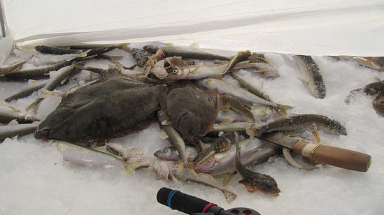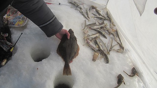 Мой улов небольшой: полста корюхов да 15 наважин, десятка два ряфчей и хитрый рыб, камбалка, и, правда, зачётная.