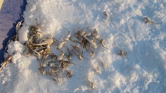 У меня прикормка, скумбрия для морской рыбы, вполне подходит, да и в сильно соленой воде на неё и сиг соблазняется. Сегодня долго дома сидел, глядел на свои снасти. Знал, что буду и корюшку с навагой ловить и сига. Для каждой заготовлено больше десятка различных удочек. Два огромных кулька. В них еще по коробке мормышек и блёсен, спецкормушки. Один то кулёк вполне в кузов входит, два никак. Да еще термос, обед, рукавицы да много какие мелочи.