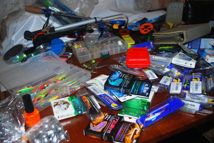 Разбор завала начал с блесен. Их у меня было не много – пара нелепых кислотных клопиков и около десятка самодельных гвоздиков.