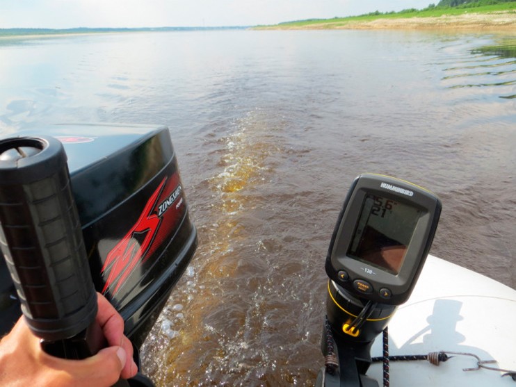 Едем подальше вверх по Двине. Хочется на быстринках попробовать, на каменистых перекатах. В прошлом году нормально отлавливались. Мотор спущен на воду, первые па. Затарахтел. Спины в воду. Прохожу для проверки глубину в два метра. Четыре тычка, из них два шнурка отправленные обратно в родную стихию.