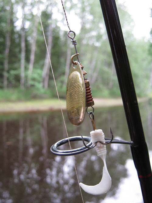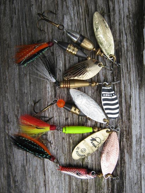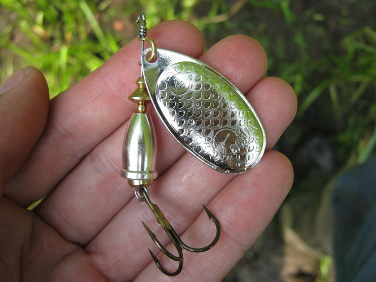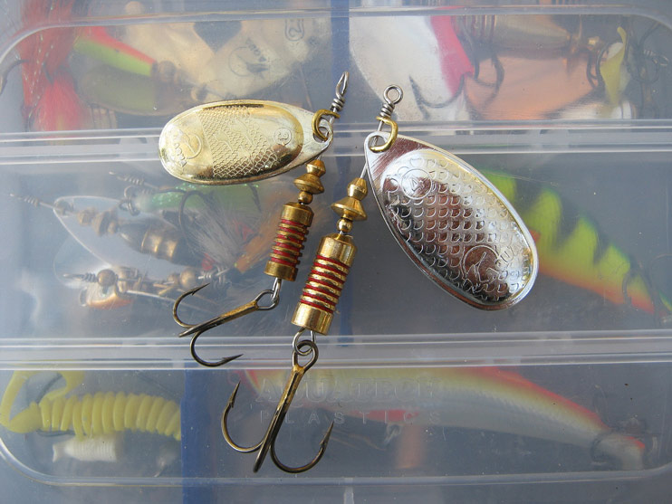Пару слов по поводу самой упаковки: очень не помешала бы информация о весе блесны. Мне, как более-менее опытному рыболову, эта информация тоже важна, пусть я и часто подбираю приманку по другим критериями, как-то: форма и величина лепестка, форма сердечника. Ну да ладно. Итак, блёсны. В каких то угадываются известные прототипы, где-то более самобытные модели. Важно то, что все работали стабильно. А разловились они практически сразу, что очень порадовало. Да иначе и быть не могло, ведь вращение блёсен стабильное, лепестки заводятся быстро. Крючки хорошего качества, мягкий ворс опушек.