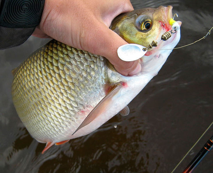 Если позволяет течение, не лишне остановить подмотку, дабы блесна играла почти на месте, под действием потока.