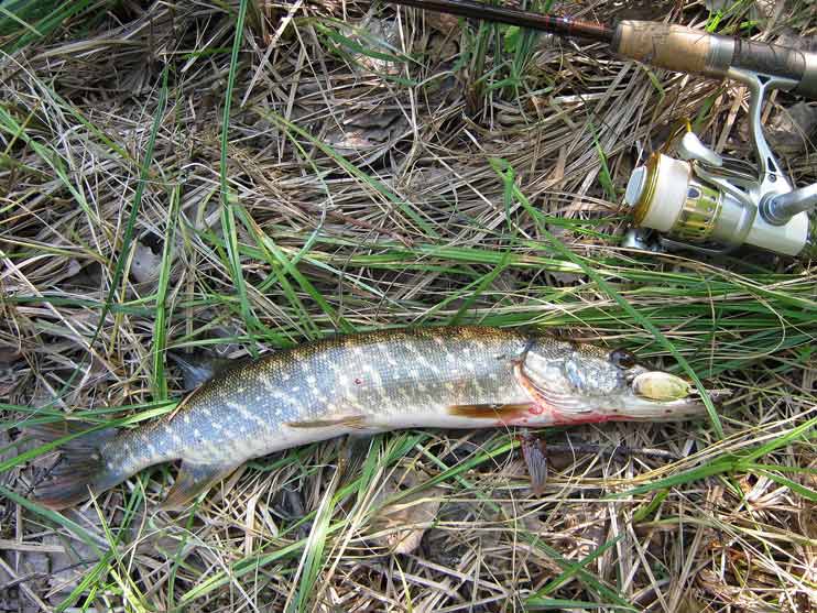 Особенно запомнилась одна рыбалка на новом озере, где я оказался случайно. Начиналась тихая утренняя зорька, накрапывал дождик. Несколько проводок уловистого японского воблера результата не дают. Глубина метра 3-4, ставлю крупную акустическую четвёртого номера. На первых забросах поклёвка и после борьбы, приличная щука в лодке! Отмечу, что больше никто в тот день ничего толком не поймал - сказался перелом погоды, видимо.