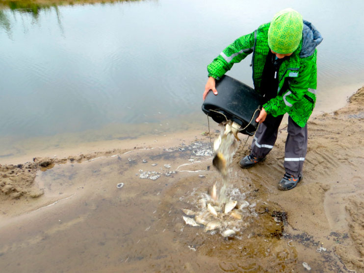 Что ж, выпускаем в основной пруд. Плывите, други, растите да радуйте нас в следующем сезоне рыбалкой на новом месте.