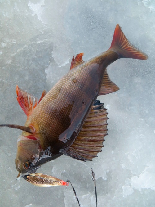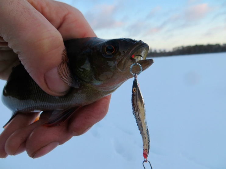 Подброс, считаю до пять, Тычок, бойкий, уверенный, даже не верится, что окунь до этого не клевал. Впечатление такое, что, как увидел, так с ходу и атаковал добычу.