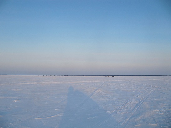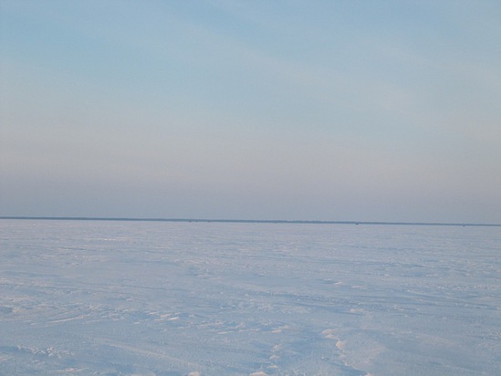 Снега на льду почти нет, и можно ехать в любом направлении.