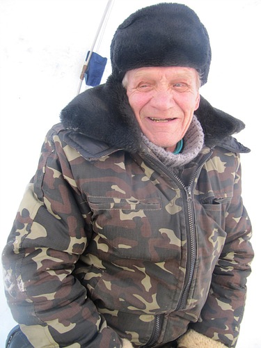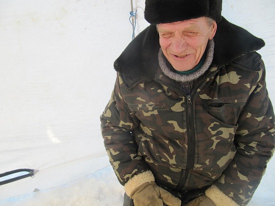Рассаживаемся втроём поперёк течения, Андрей, Андреич и я. Отличная, жизнерадостная компания сегодня подобралась. Один Андреич чего стоит. Полтора года и седьмой десяток разменяет. Всё бодр и весел, всё тянет его на родные просторы посмотреть, да половить рыбки. Хоть и родился на Украйне, да всё ровно Север уж родным считает, столь лет ему отдано. Каждую зиму здесь, как штык.