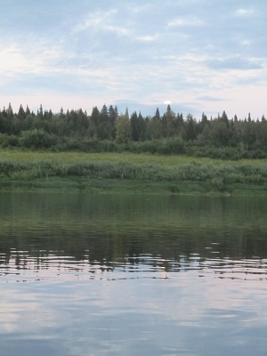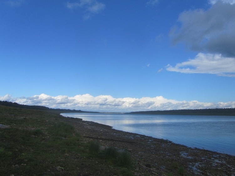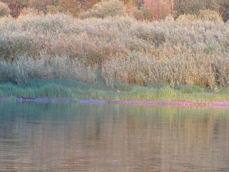 К вечеру обещали утихания ветра. Волна же с севера заворачивает и начинает постукивать в нос лодки. Как бы не усилилась. Успокаиваю себя, коли так, дак вверх по течению начнем подниматься, кормой к волне и ветру повернемся.