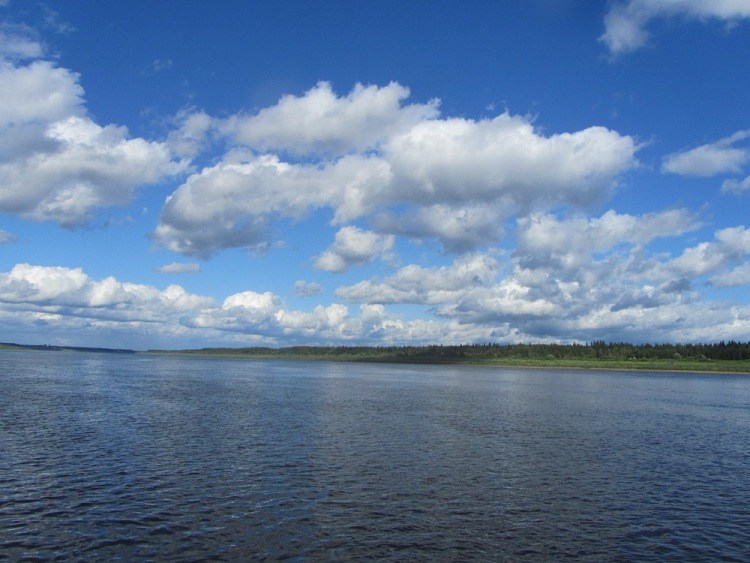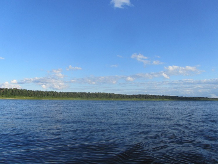 Ловим кайф от адреналина, солнечного настроения, голубого неба и шалавливого ветерка. Налетающего сегодня порывами с запада и никак до нас не добирающегося толком, ведь мы за крутым берегом укрыты и держим курс в сторону Архангельска.