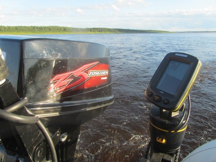 Долго не клюет. Поворачиваем по течению. Летим, ветерок теплый в лицо. Мне, конечно, в спину. На эхолот гляжу, да мотором управляю. Привык спиной вперед ехать.