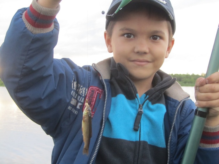 У младших рыбаков тоже поклёвки, правд, рыбка помельче. От он, настоящий местный линек! Для ребятишек огромадный Линь!