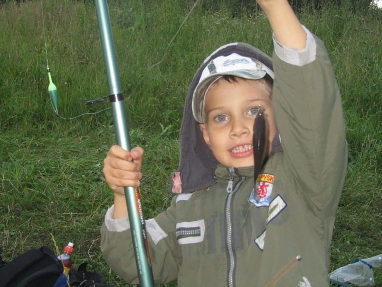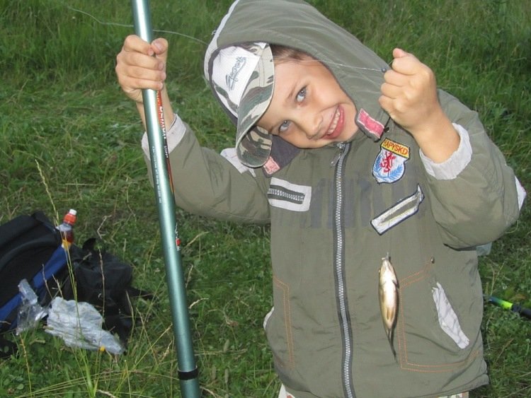 Чайку немножко, тут сынуля кричит: «Поймал, поймал!» Молодец, рыбак подрастает.