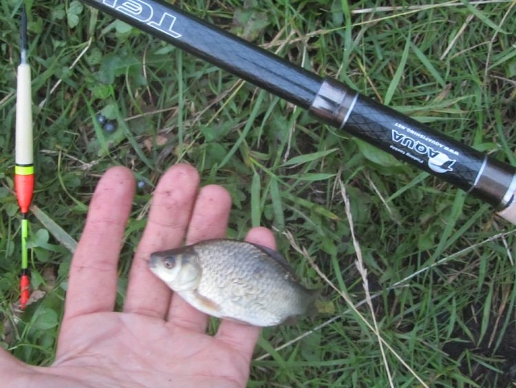 В прошлом году был у меня маленький походец. Взял дубье шестиметровое, еле подъемное на водоем. Удостоился одним карасем.