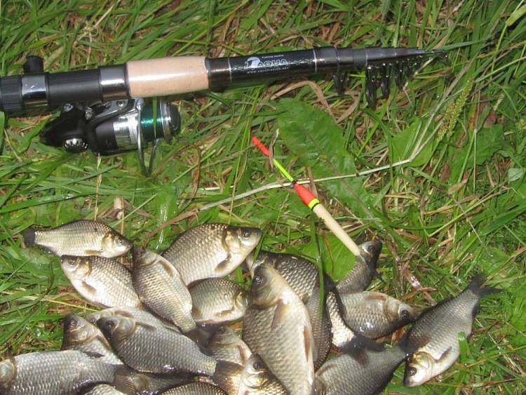Я приготовил необходимую снасть, прикупил удилище телескопическое AQUA TELE PIKE 3,60m, 10-40g, установил безинерционную катушку, на леске скользящий поплавок, грузила рядочком, крючок малюсенький, дежись рыба!