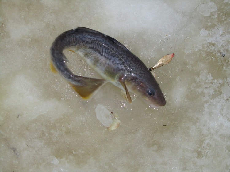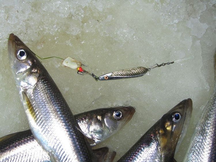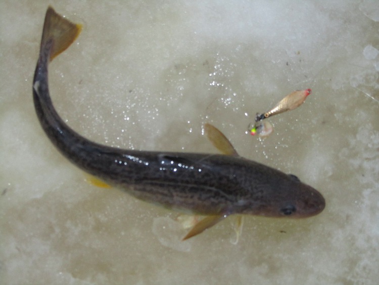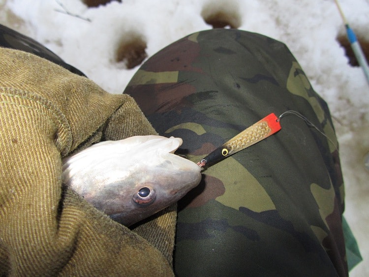 Фото. Онежская навага выбирает зимнюю блесну «Русалка AQUA».
