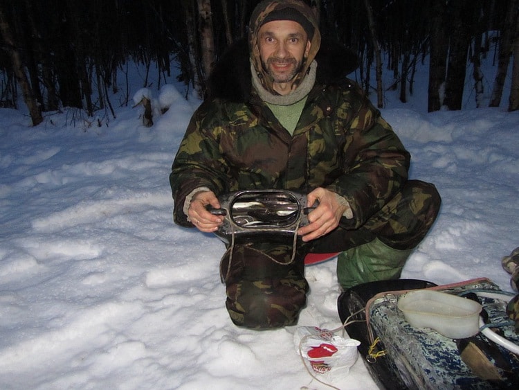 Улов пришлось на волокуше везти, сильно плечо оттягивает. Рад, доволен, и отдохнул, и половил, и домой на пожарить будет.
