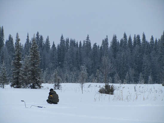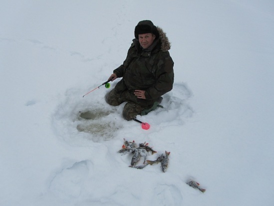 Оказалось, не надо на одном месте сиднем сидеть. Бури и передвигайся. Так и вспомню наставление опытного блеснильщика, рассказывали мне в онежском национальном парке на озере Нюхча. У него норма в день сто лунок. Всегда с достойным трофейным окунем приходил. Глянул на просторы озерные, коли сто заложить, то да.