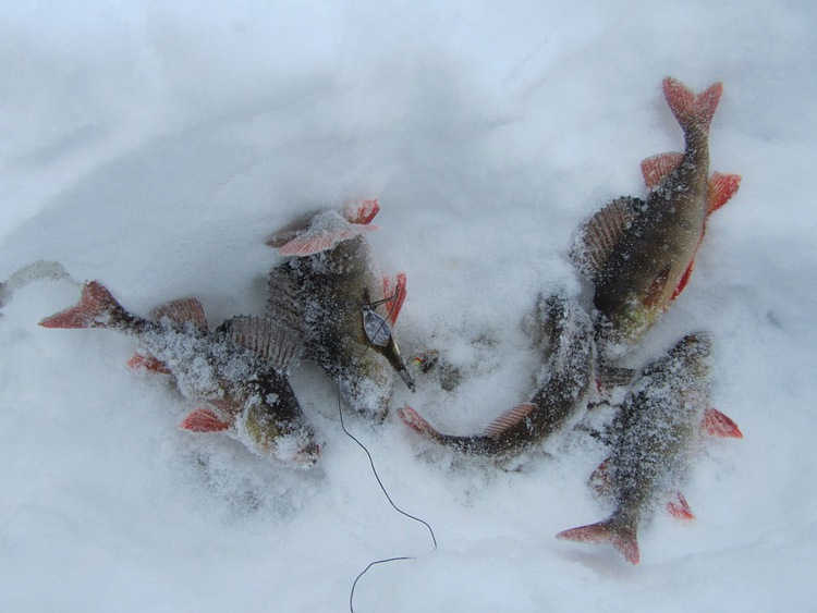 Фото. Окуневая стайка поймана на зимнюю блесну AQUA «Русалка»