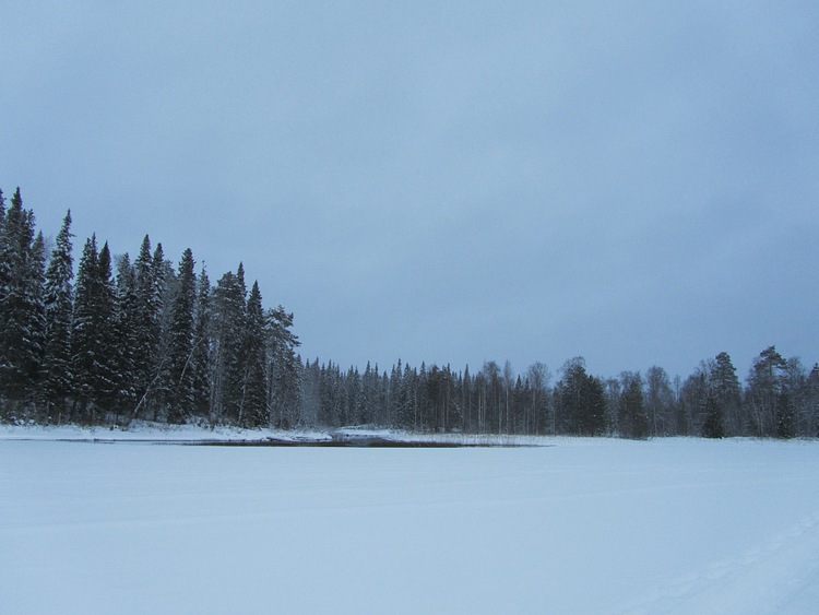 Равнина белая открылась. Не знать, что озеро, показалась бы полем обычным. Берега не высокие, почти пологие, тресту снегом присыпало на косах тростник, что летом видать придавило. Простор.