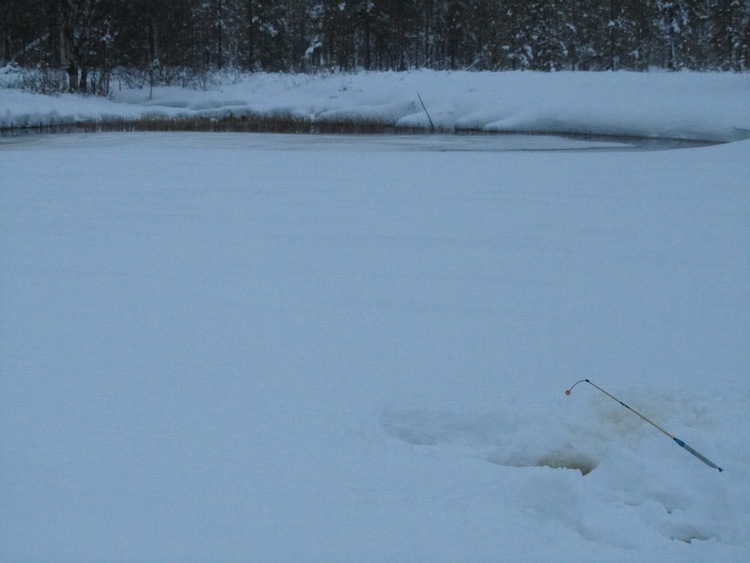 Перебрался на следующую лунку. Заметил, что вчера, что сегодня, клюёт слабо. Приходится выманивать, ухищряться в игре. Жаль, что мала возможность к маневру из-за затупившегося бура.