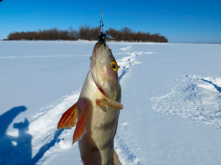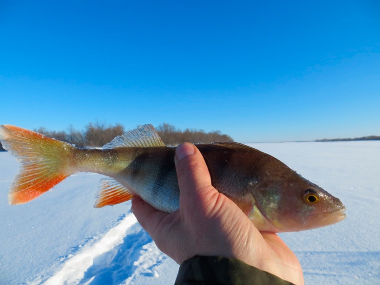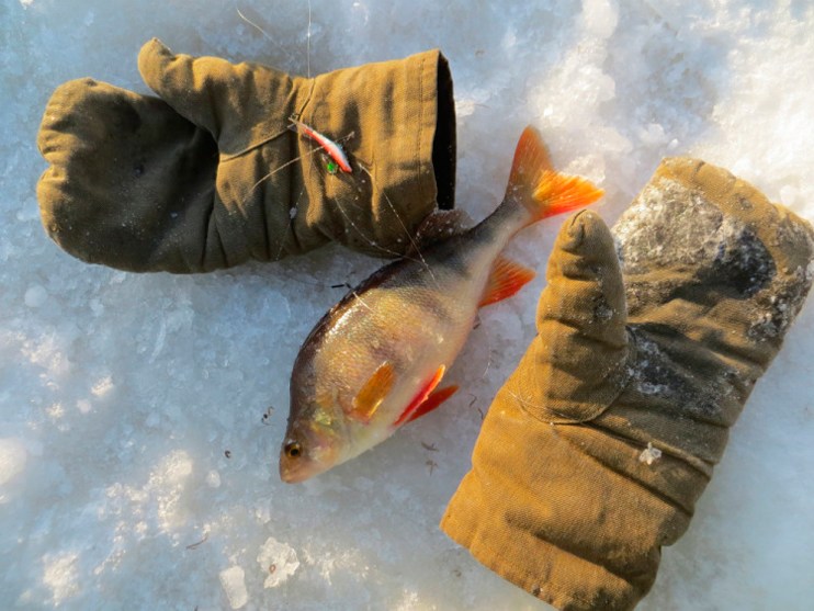 Третий. Несусь по лункам. Проверять вдруг там была рыбка, просто не клевала. И почти в каждой отзыв. То просто поинтересуется, и я не успею подсечь. Отойдет. То всё ж выманиваю трудовую. Конечно, не было на сей рыбалке ни огромных трофеев, не килограммов окуней. Ель на небольшую ушку натягал…».