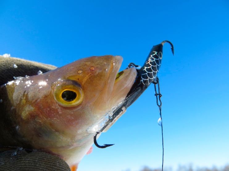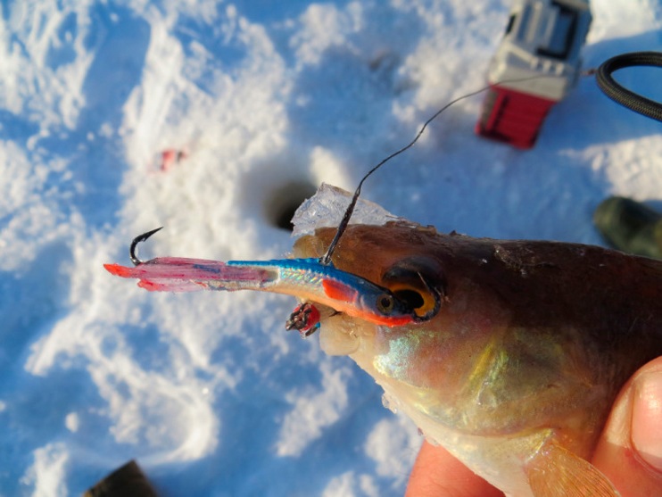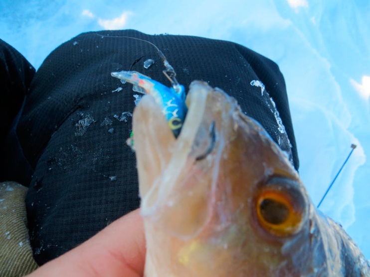 «…За ним почти подо льдом на спуске приятный ударчик. Вывожу в лунку. С брызгами выскакивает экземпляр покрупнее