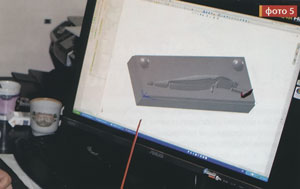 На основании полученной модели воблера создается модель пресс-формы для термопласт-автомата (фото 5). И записывается управляющая программа для станков с ЧПУ. Далее - изготавливается пресс-форма для литьевой машины (фото б). И наконец - первый пробный экземпляр (фото 7). Весь процесс, как мы и говорили, прошел под одной крышей, а главное - что время, затраченное на изготовление пробного экземпляра, составило всего 3 дня! Понятно, что дальше начинается достаточно долгий этап тестирования, возможно внесение изменений в форму или конфигурацию носовой лопасти. Но, тем не менее, в технологичности и гибкости производства сомневаться не приходится.