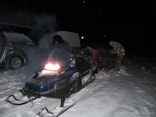 Собрал, упаковался, сходил за снежником, вытряхнул из санок набившийся на передней дороге снег, прогрел машину, подогнал к товарищам.