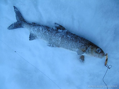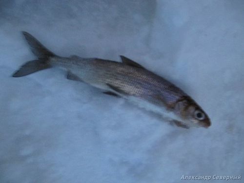 Торпедно-ракетные очертания, очень напоминает по цвету и форме хариуса. Говорят, что сиг, кто называет его "чиром". Странная и очень интересная рыбка со своими повадками и ареалом обитания. То, что она нерестится под Новый год подо льдом, вообще ни в какие ворота не лезет. Полагаю, это связано с наименьшей активностью в данный период основного природного врага сига - местного окуня.