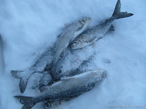 Серебристо-черное тельце булькнуло в проруби. Потянул на себя и нехотя, головой вперёд сижок выбирается на лёд. Первый есть. Ура!