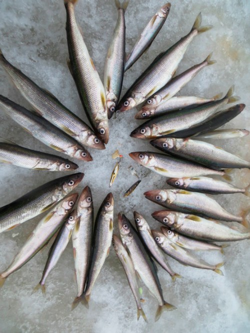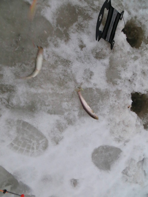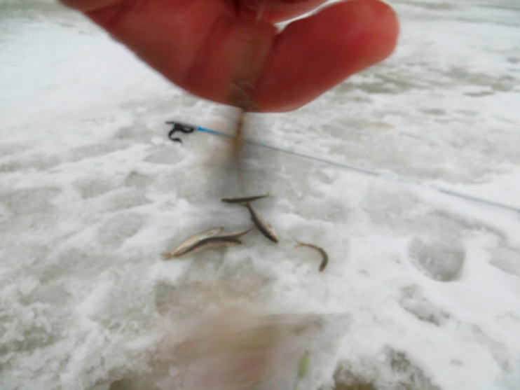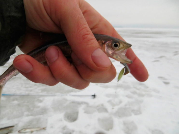 Корюшка подобралась к прикорме, уж не зевай, успевай.