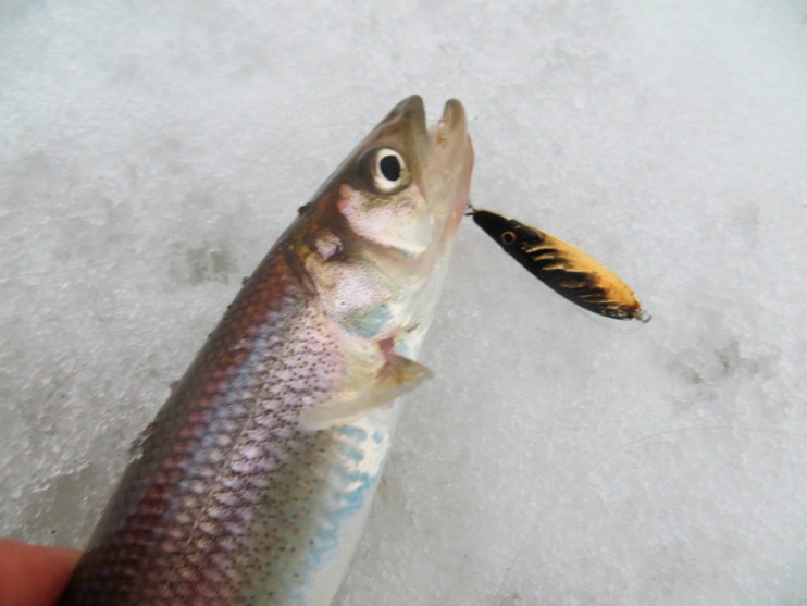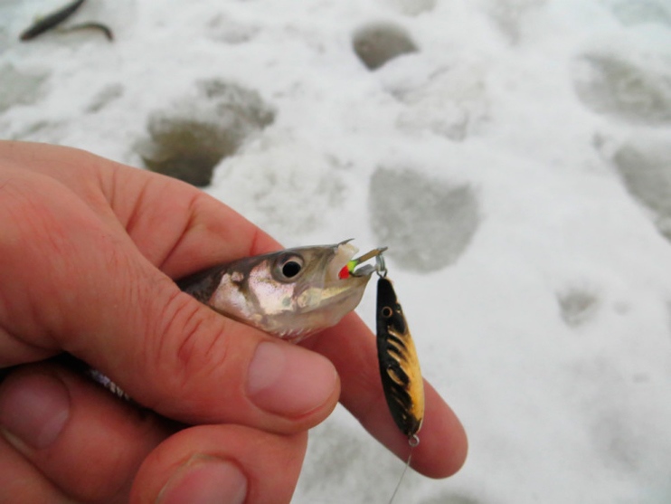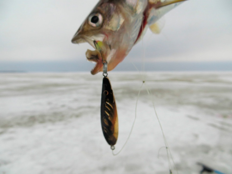 Странно, с одной стороны явно не жор у рыбы, с другой стороны выбирает постоянно блесну, а не любимую мормышку со светонакопителем.