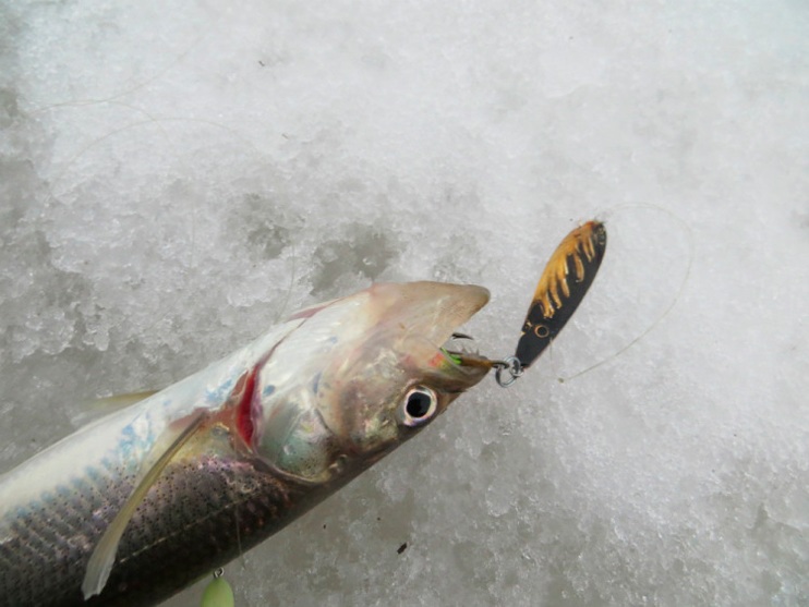 Присмотрелся в серых декабрьских цветах окрас блесны окрас корюха напоминает.