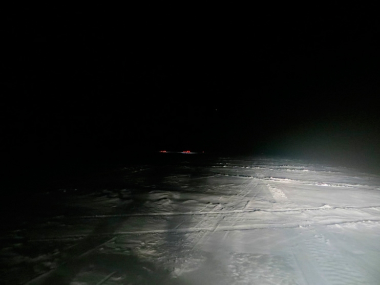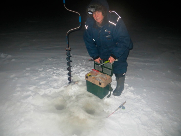 Темно, Михаил уже лунки подготовил, осталось определить в какую сторону течение.