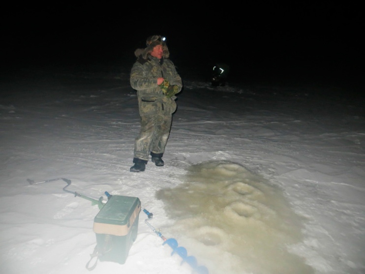 И можно вытаскивать. Разогрелся, даже куртку расстегнул.