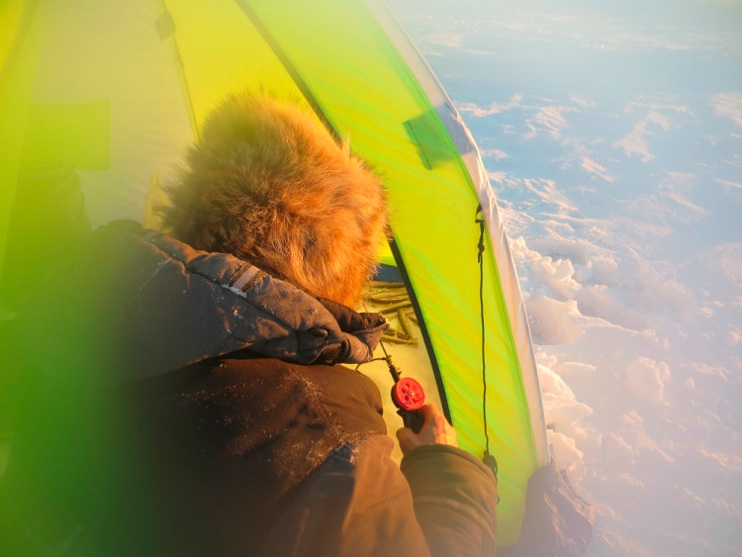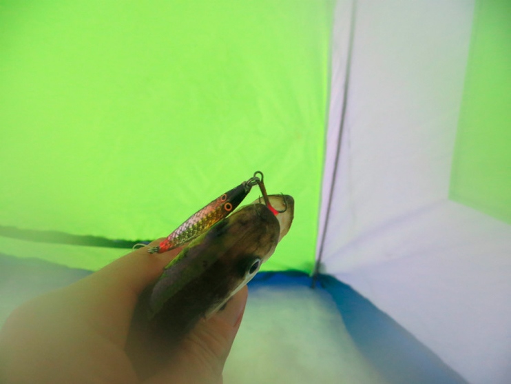 Бесклёвие. Прогуливаюсь у палатки, зарядкой позанимался, сам краем глаза поглядываю. Уды не убрал. Обычно так, как займешься другими делами, так рыбка появляется. Кивок предательски зашевелился. Ныряю в палатку, благо широко раскрыта на распашку.