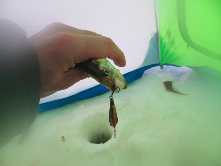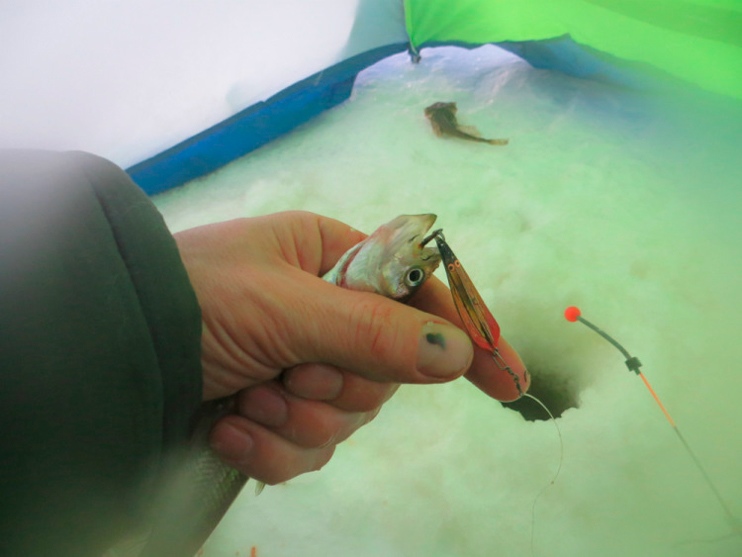 Достаточно лишь побыстрее запустить приманку в лунку.