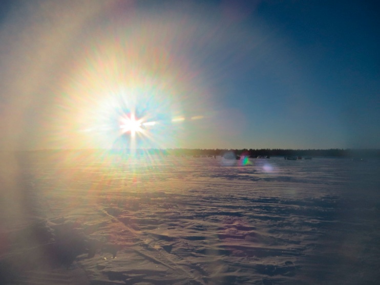 Корюшка стала признавать более светлые блесенки. Однако вскоре тишь и безветрие наполнило взморье, солнце ярко светило и без палатки щекатало глаза, течение стихло и, похоже, вместе с ним заснула и рыбка.
