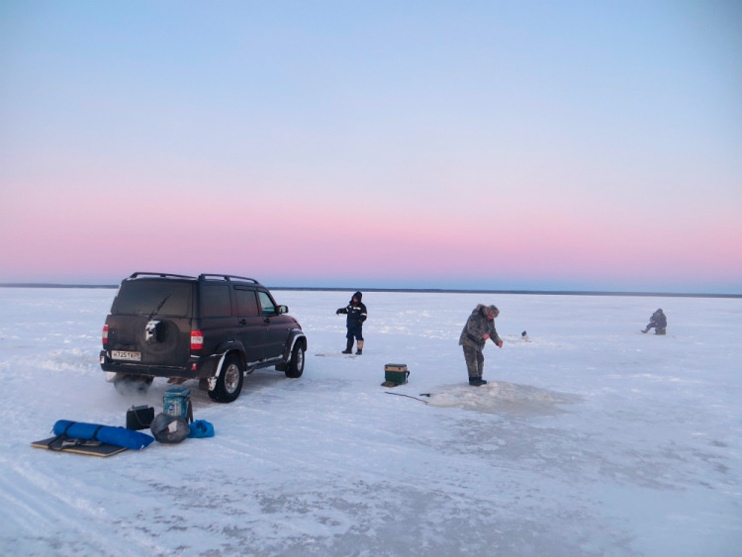 Недалеко забазировалась Нива. Рыбаки явно отогреваются в машине. Мороз то явно покрепчал. От трех градусов в городе, здесь на Железных воротах к двадцати подбирается.