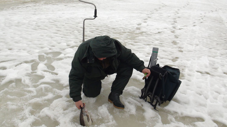 Наступает пресыщение. Клев это хорошо, но большое количество мелкого судака, бодро бегающего вокруг ног, наводит на мысль о том, что пора бы уже отпустить его к маме. Парочки, повредившей о крючки блесен свои жабры, нам хватит на еду, а то, чем можно будет в понедельник хвастаться, все еще живет подо льдом.