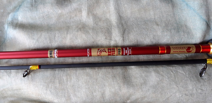 Я приспособил для этих целей спиннинг штекерный AQUA RED FISH длинной 2,4 метра с тестом 15-45 грамм, т.к. он очень хорошо передает нужную мне информацию при контакте грузила с дном и касании рыбой наживки, имеет достаточную жесткость, чтобы хорошо работать в таком режиме - с оснасткой весом до сотни грамм. А длина его как раз отлично позволяет не только высоко подкинуть грузило со дна, но и рыбу на длинном, в полтора метра, поводке, удобно положить в лодку.