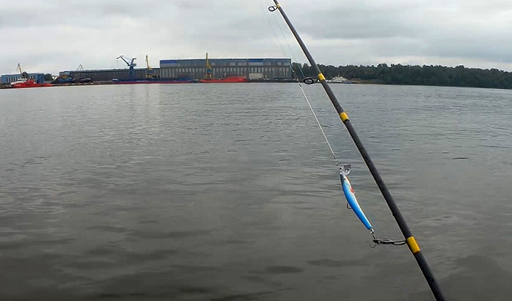 Когда грузило ударяется о дно, следует потянуть спиннинг вперед по ходу лодки и вверх, оторвав от дна огрузку и тут же провести его назад и отпустить шпулю. В это время грузило снова падает на дно, а игра приманки останавливается. Воблер какое-то время всплывает без движений.