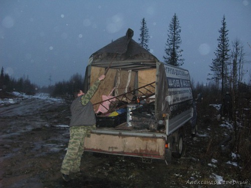 Поднимаемся рано. Ещё до семи. Завтрак по плану – каша, чай. Дальше собираем кузова. Да теплые вещи, не потребуются. Погода изменилась. Ночью снежок повалил, потом его сменил дождь, который к утру от снежка и следа не оставил. Словом, на улице тепло. Бабье лето наступило:)